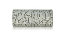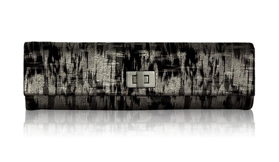 An extra long flap clutch in soft leather custom printed with a metallic brush stroke motif